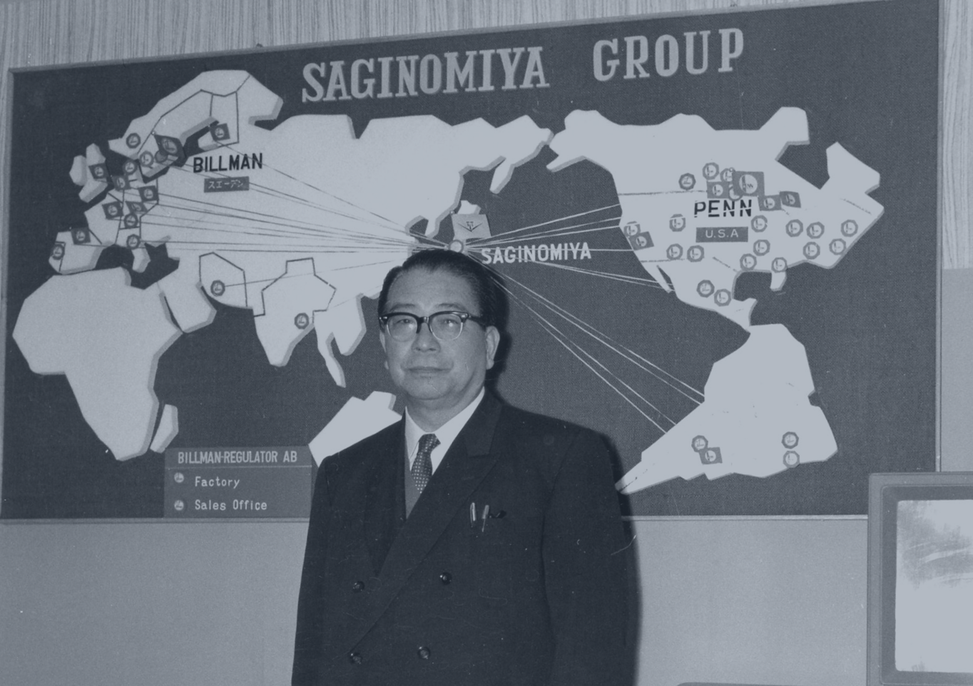 また、産業の復興が年をおって急速な発展を遂げ、自動制御機器は性能の高度化、品質の均一化、広範囲の品種の開発等が求められ、サギノミヤも時代の要求に対処するため、海外拠点の設立や設備の拡充を行ってまいりました。
