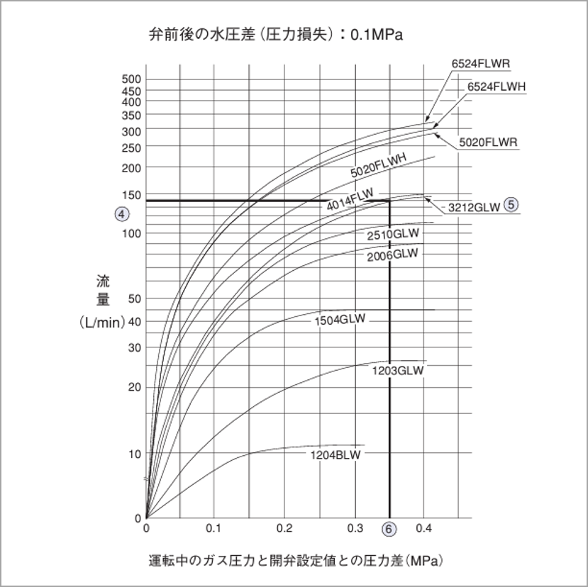 | 弁前後の水圧差(圧力損失)(MPa) | 係数 |