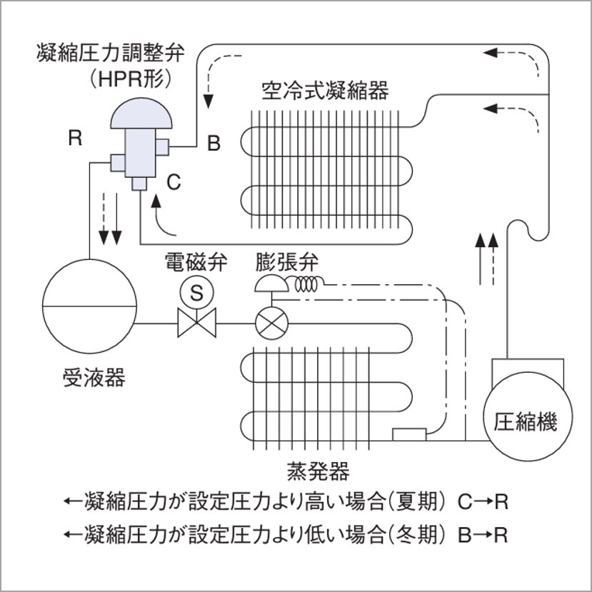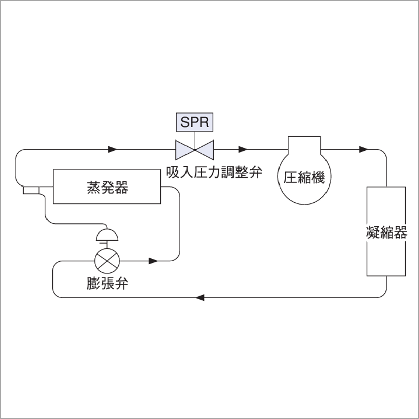 蒸発器出口側の吸入配管に取付けると、蒸発圧力(相当蒸発温度)を常に設定圧力以上に保持できます。