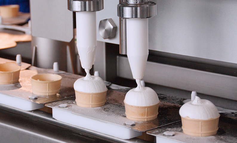 レストランやホテルでは見た目もきれいな氷が出てきますが、この氷を作る製氷機には電磁弁が使われています。ソフトクリームやスムージーを作る機械も適切な温度管理が必要で、そのために電磁弁や圧力スイッチなどの制御機器が使われています。