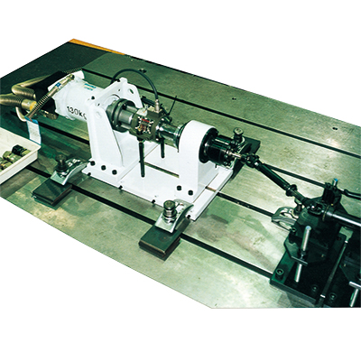 ステアリングコラム部分の耐久性試験を行います。入力側には油圧モータを使用しています。