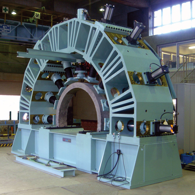 トンネル覆工模型(1/5スケール)に実際の施工状態の負荷を多角方向から加える試験ができます。