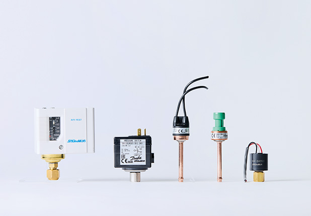 サギノミヤは空調や冷凍冷蔵、給湯器、車両、半導体・液晶製造装置といったさまざまな分野に多種多様な自動制御機器を提供しています。