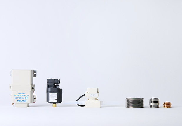 サギノミヤは、自動制御機器のリーディングカンパニーとして、エアコンなどの空調機器をはじめとして、冷凍・冷蔵、暖房・給湯などの冷熱分野のほか、医療機器、半導体、重電、建設機械などの一般産業分野、及び自動車、鉄道、船舶、航空機などの輸送機器分野等、その応用範囲は幅広く、快適環境や省エネルギー、省力化に大きく貢献しています。