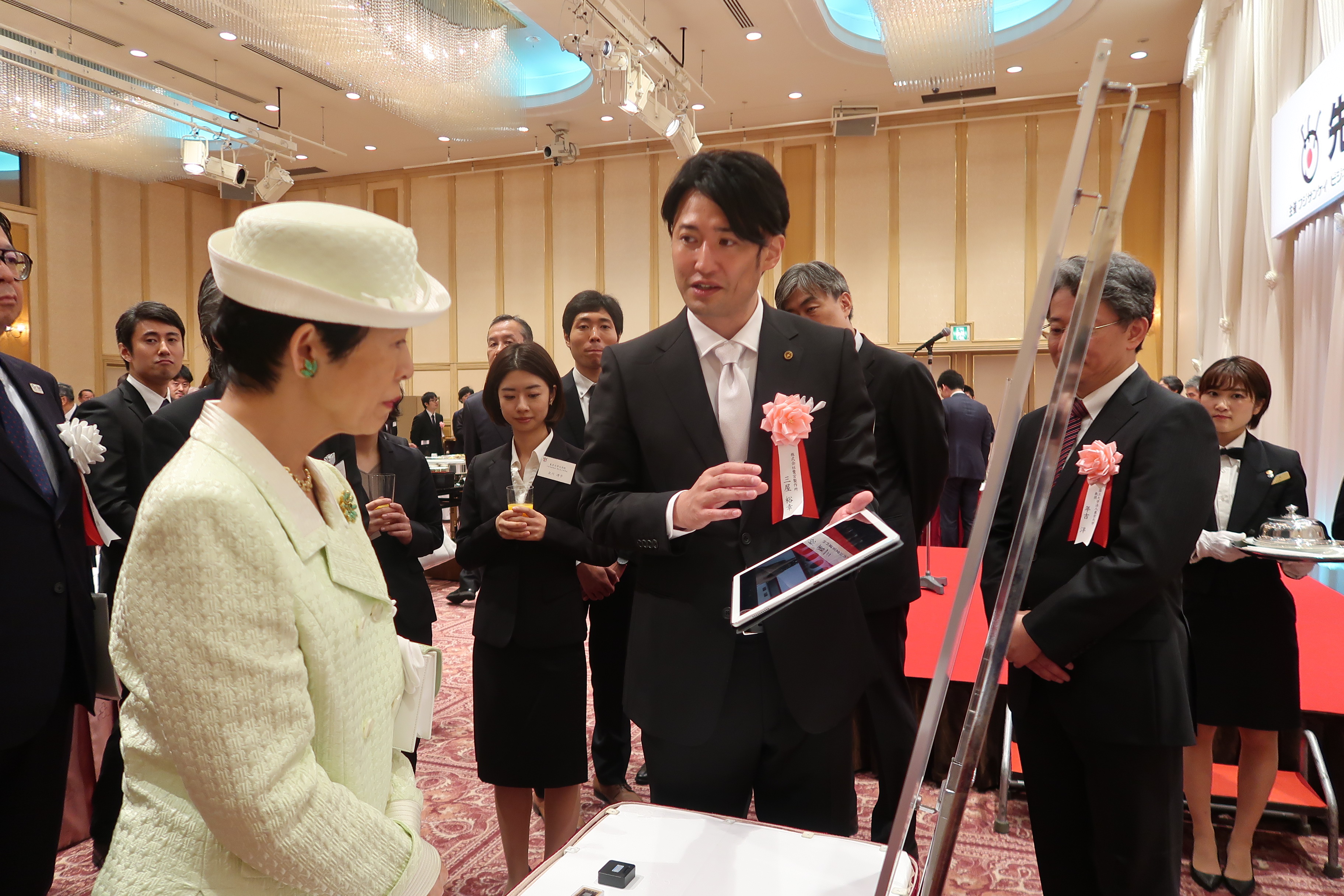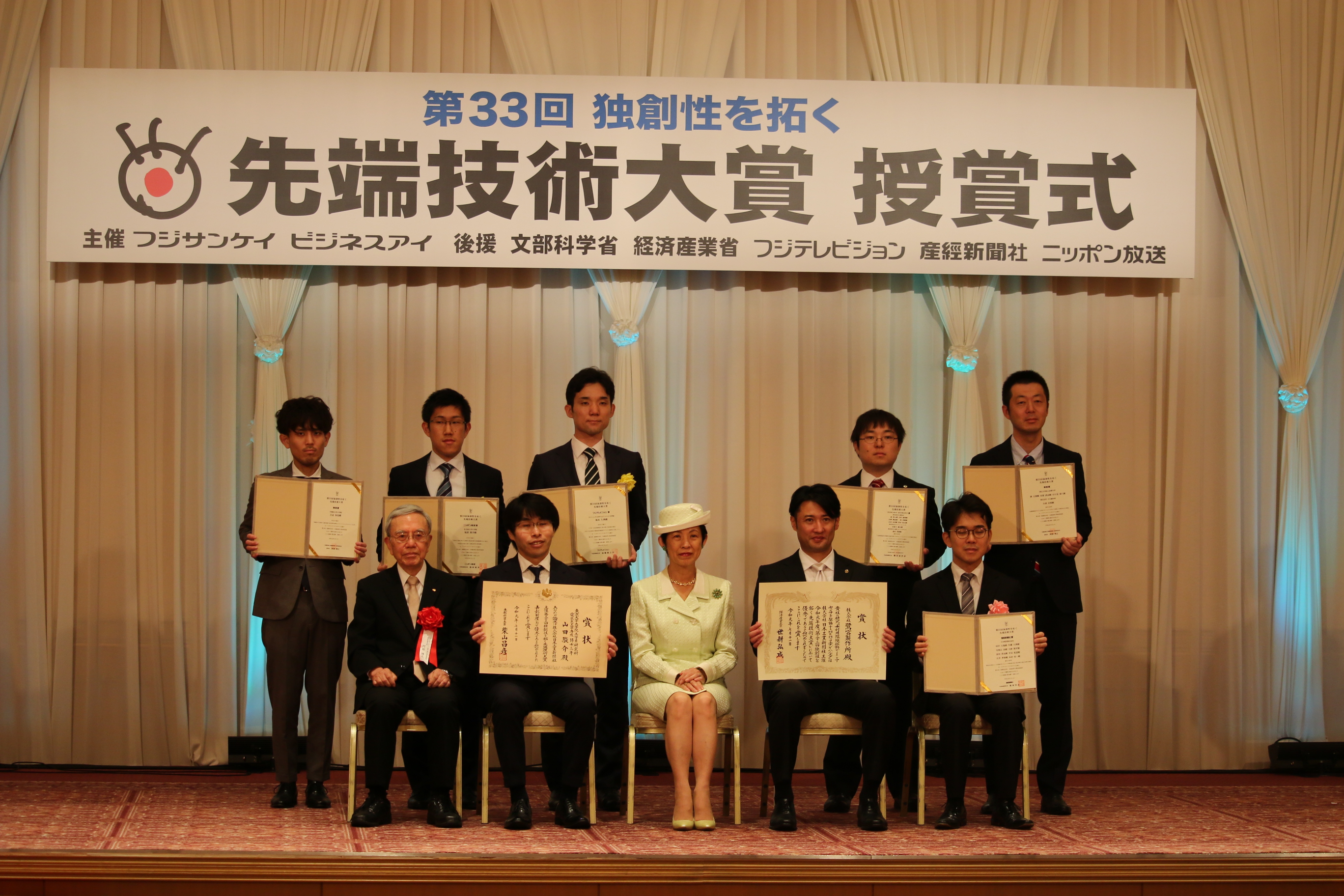 「第33回独創性を拓く 先端技術大賞」の授賞式が、7月11日(木)、高円宮妃久子殿下をお迎えし、東京・元赤坂の明治記念館で行われました。授賞式では、高円宮妃久子殿下から受賞者へのお祝いとともに、「先端技術の研究過程で得られるデータは知的財産であり、その質の高さは技術立国日本の国力を示すことや、科学技術やイノベーションは国連のSDGs(持続可能な開発目標)を達成するためにも重要な役割を果たすこと」などについてお言葉を述べられました。壇上にて経済産業審議官から経済産業大臣賞の賞状を授与されました。